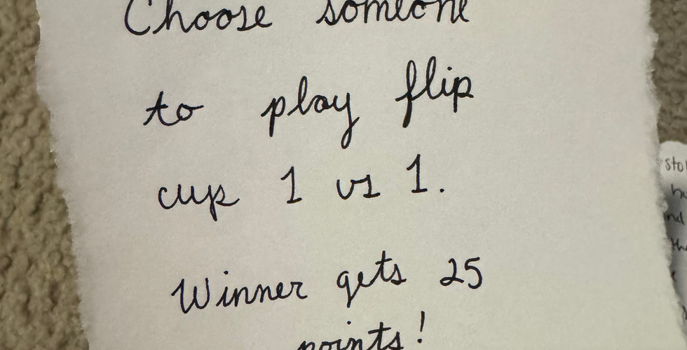 “Choose someone to flip cup 1 vs 1. Winner is awarded 25 points”